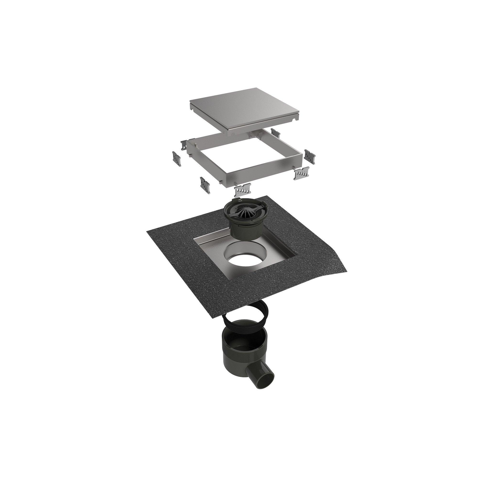Easy Drain AquaJewels Quattro Zero geborsteld 20x20cm met zijuitlaat 50mm waterslot 30/35/50mm RVS AJQ 20X20 ZM