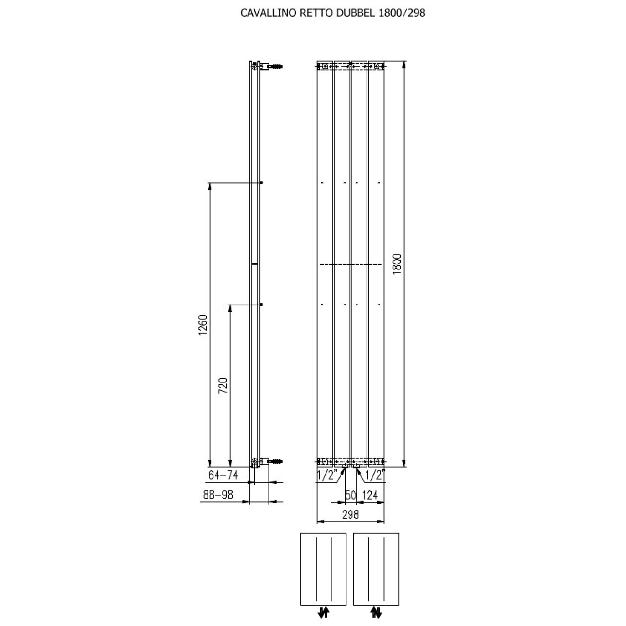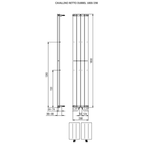 Plieger Cavallino Retto designradiator verticaal dubbel middenaansluiting 1800x298mm 817W wit