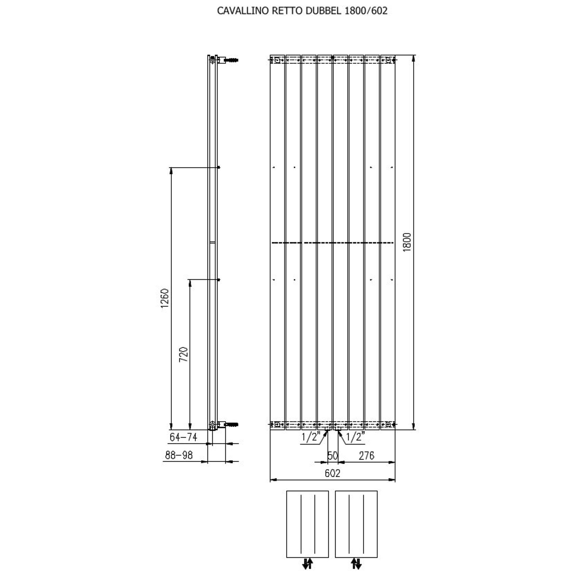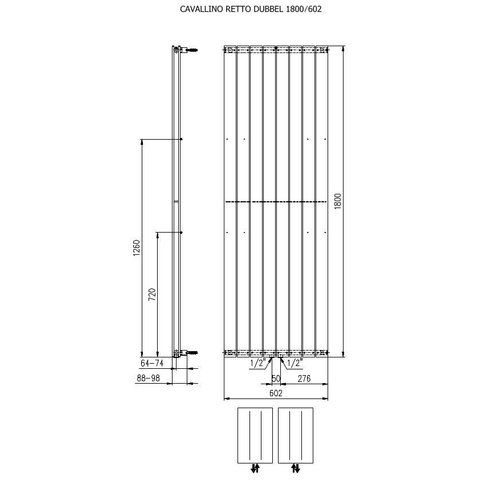 Plieger Cavallino Retto designradiator verticaal dubbel middenaansluiting 1800x602mm 1549W wit