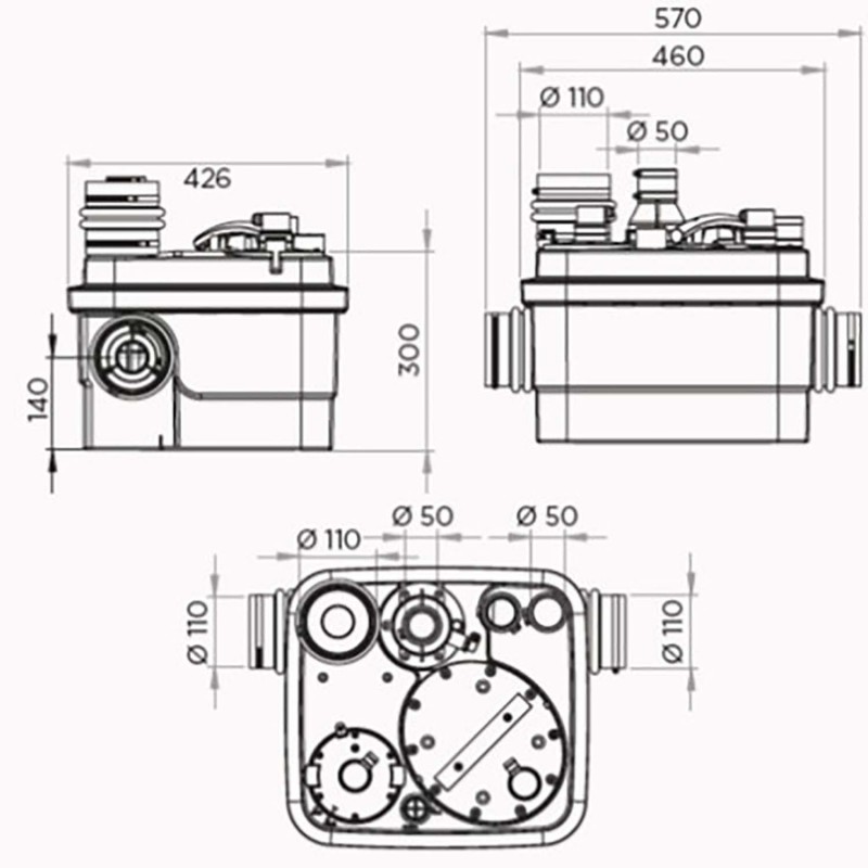 Sanibroyeur Sanicubic 1 multifunctionele tweepomps afvalwaterinstallatie