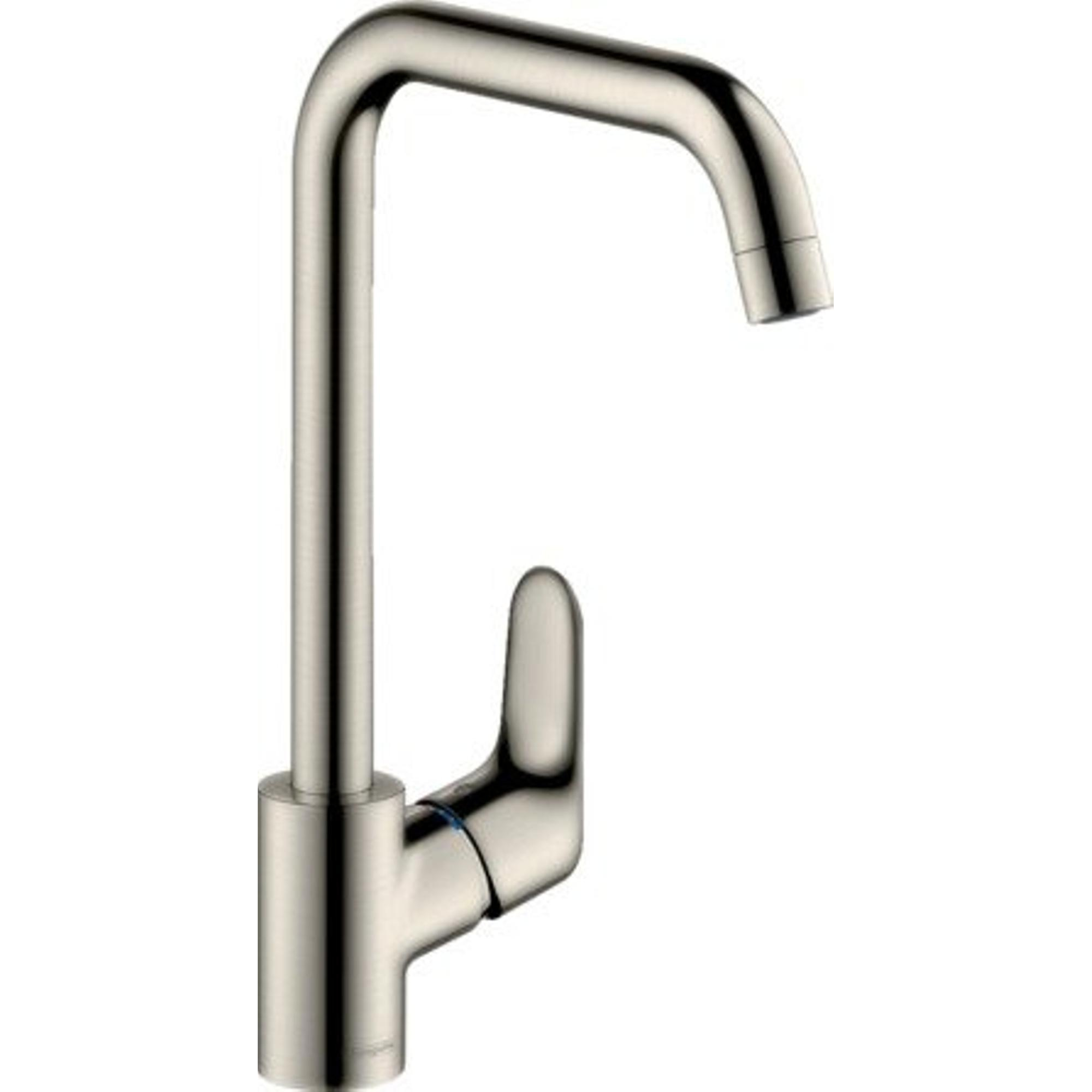 Hansgrohe Focus E2 keukenkraan met hoge draaibare uitloop instelbaar 110 150 en 360 RVS look