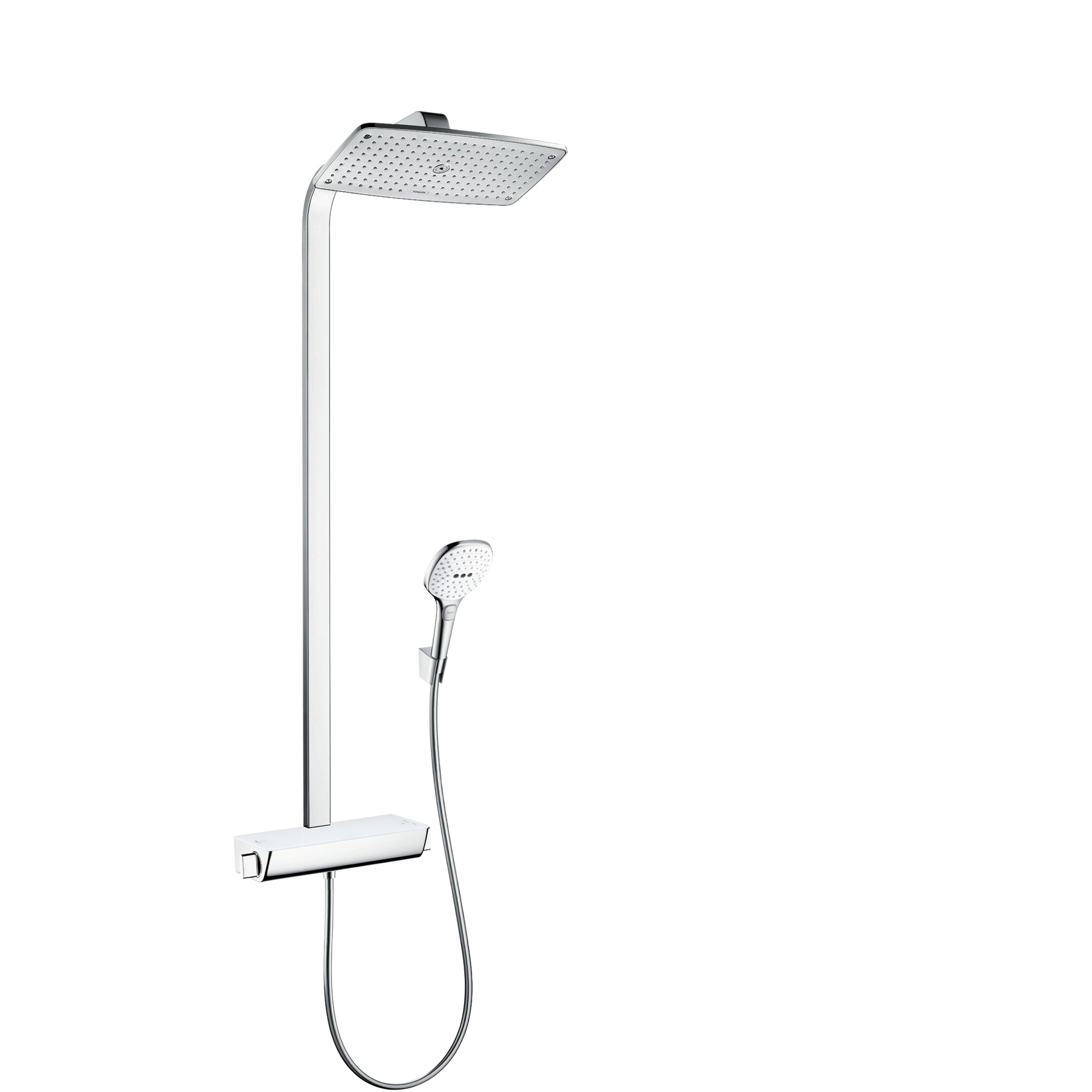 Dit douchesysteem bestaat uit hoogwaardige, precies op elkaar afgestemde componenten en is met zijn wit/chroom-design een fris optisch highlight. Het omvat:• Raindance E hoofddouche