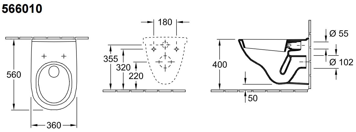 Villeroy & Boch O.novo wandcloset - 56cm - met spoelrand - diepspoel - ceramic+ - zonder zitting - glans wit