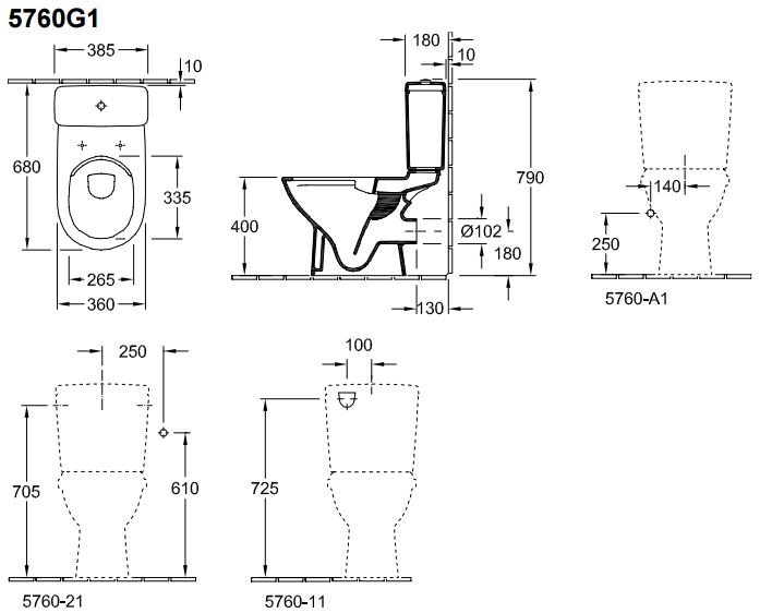 Villeroy & Boch O.novo duoblokreservoir met zij en achteraaansluiting ceramic+ wit 0124173