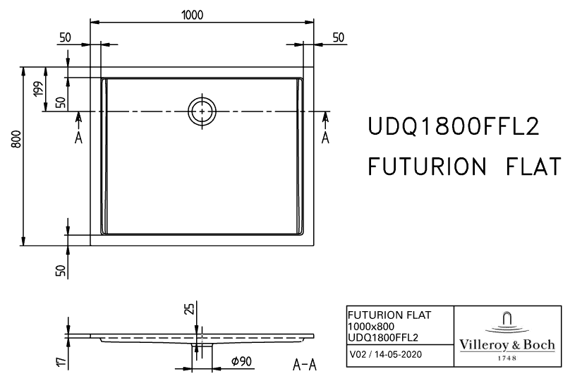 Villeroy & Boch Futurion Flat douchebak quaryl rechthoekig 100x80x2,5cm wit 0930384