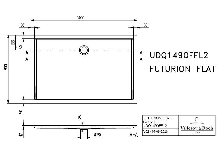 Villeroy & Boch Futurion Flat douchebak 140x90x2,5cm quaryl wit