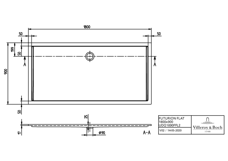 Villeroy & Boch Futurion Flat douchebak quaryl rechthoekig 180x90x2,5cm wit