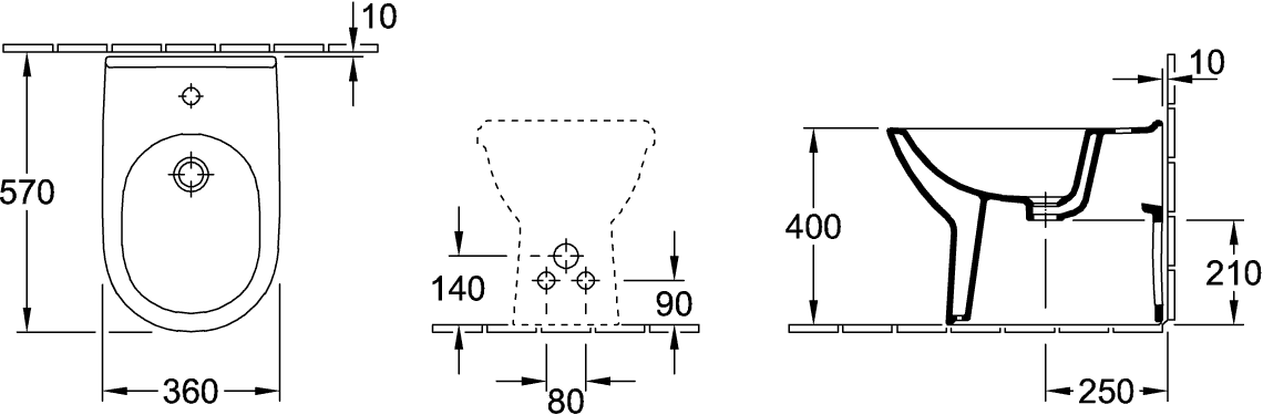 Villeroy & Boch O.novo staand bidet met overloop 1 kraangat ceramic+ wit