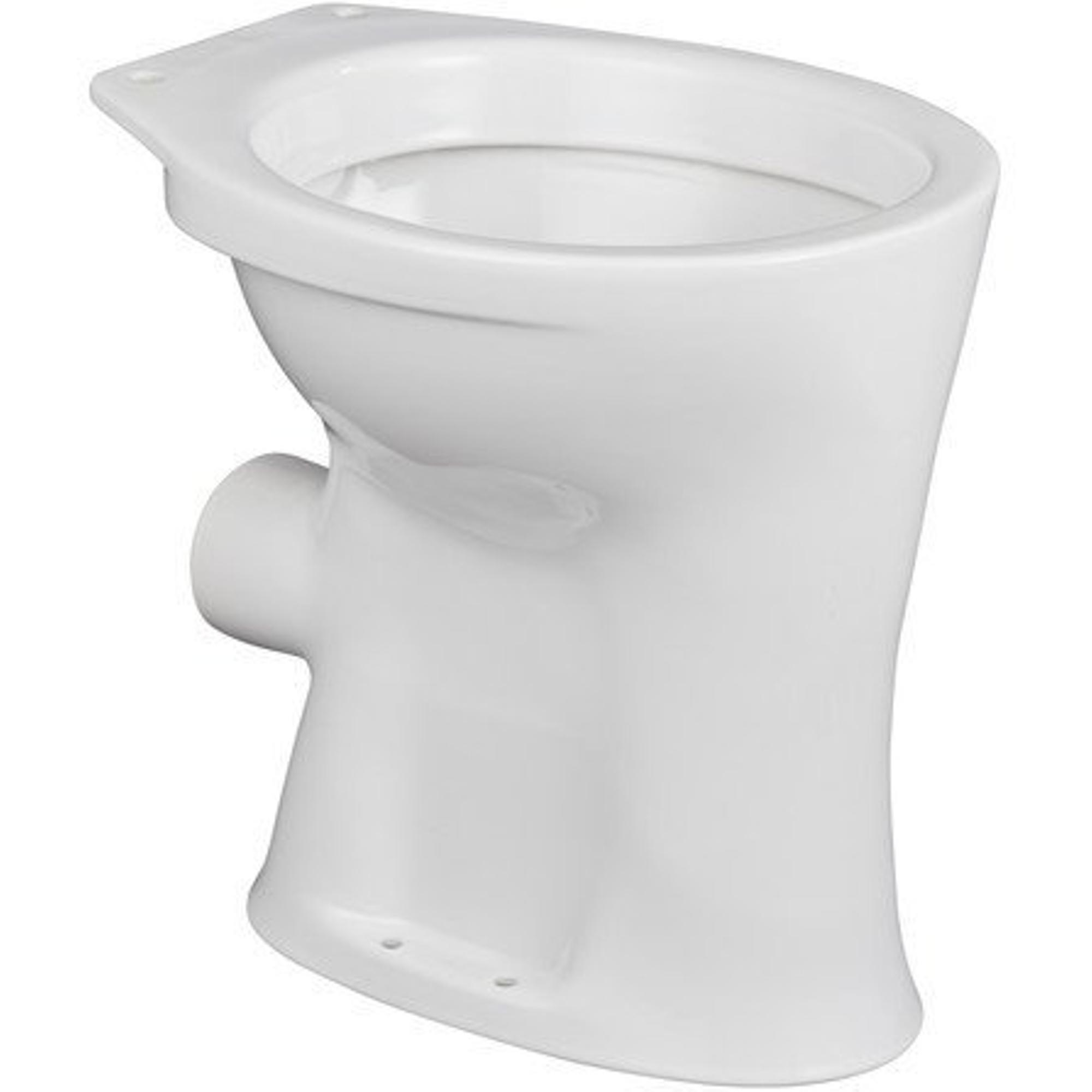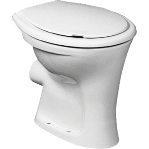 Eurovit staand closet 465 mm van keramiek. Verhoogde uitvoering +60 mm. Totale hoogte 455 mm. Voldoet aan norm DIN EN 997. Vlakspoel. Horizontale afvoer H/PK. Geschikt voor spoeling vanaf 6 liter. 4 bevestigingsgaten. Bevestiging met 4 schroeven M6 x 70 mm (2x K711067). Exclusief bevestigingsmateriaal. Exclusief closetzitting.