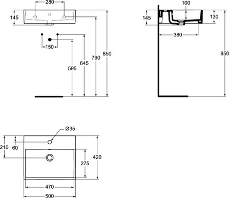 De Ideal Strada wastafel gemaakt van fijne vuurklei (keramiek) heeft een centraal doorgestoken kraangat. De bevestiging gebeurt door middel van stokschroeven aan de muur.