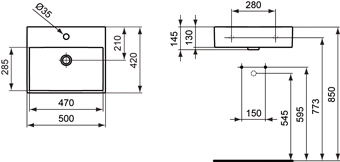 De wastafel wordt geleverd zonder kraan en zonder bevestigingsmateriaal.
