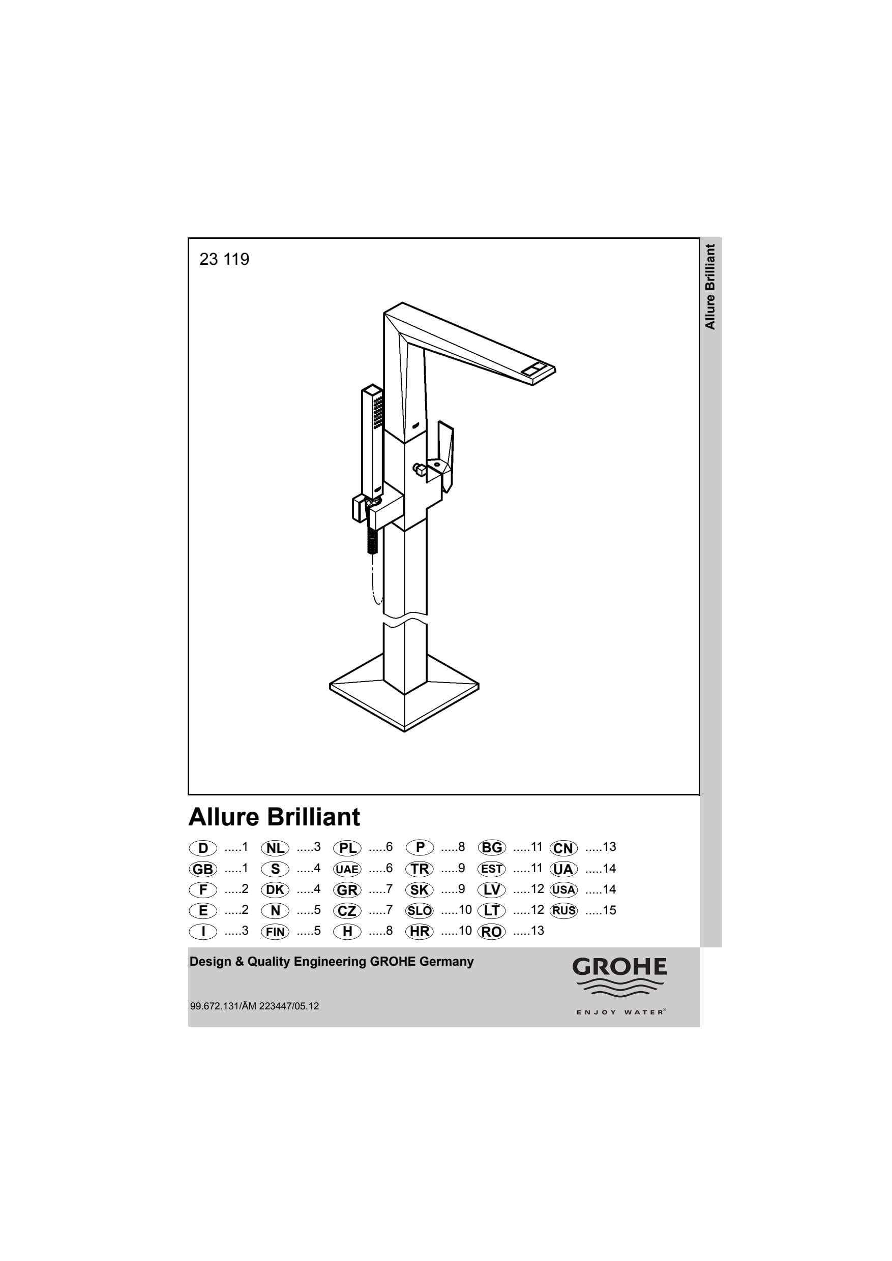 De GROHE Allure Brilliant baduitloop voor vloermontage met handdouche – intrigerende hoeken en luxe! Stevige vlakken, intrigerende hoeken en uitgesneden details. Allure Brilliant illustreert de absolute precisie die alleen kan worden bereikt door jarenlange ervaring en een niet aflatende passie voor innovatie. Complex zonder ingewikkeld te zijn. De veelzijdige kranen geven een nieuwe dimensie aan badkamerdesign en aan water..