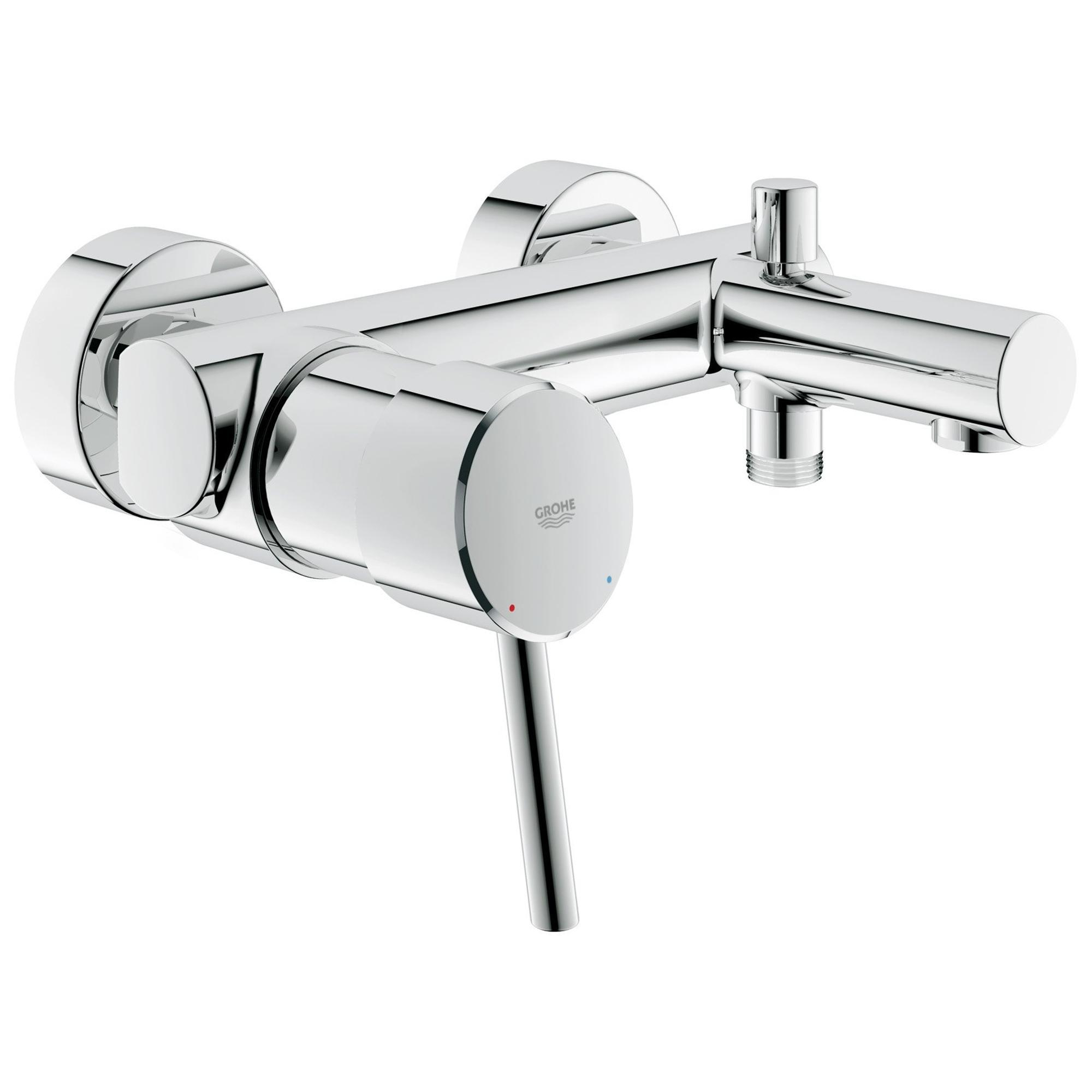 GROHE Concetto Bandmengkraan: de badkraan die past bij de sfeer van je badkamer Door het mondaine, dynamische en zelfverzekerde ontwerp is de Concetto de perfecte keuze voor moderne badkamers. De cilindrische vormen met verschillende diameters zorgen voor een uniek design en de schuine randen zorgen voor een stijlvolle afwerking. Zoals alle GROHE series is Concetto een onverslaanbare combinatie van design en prestaties. De asymmetrische vormgeving van de mengkranen voor bad en douche trekken de aandacht. De GROHE StarLight® verchroomde afwerking accentueert hun unieke design. GROHE SilkMove®, onze geavanceerde cartouche technologie, zorgt voor een soepele en nauwkeurige bediening van de waterstroom. De mousseur is onder een hoek geplaatst en verhoogt hierdoor het comfort voor de gebruiker.