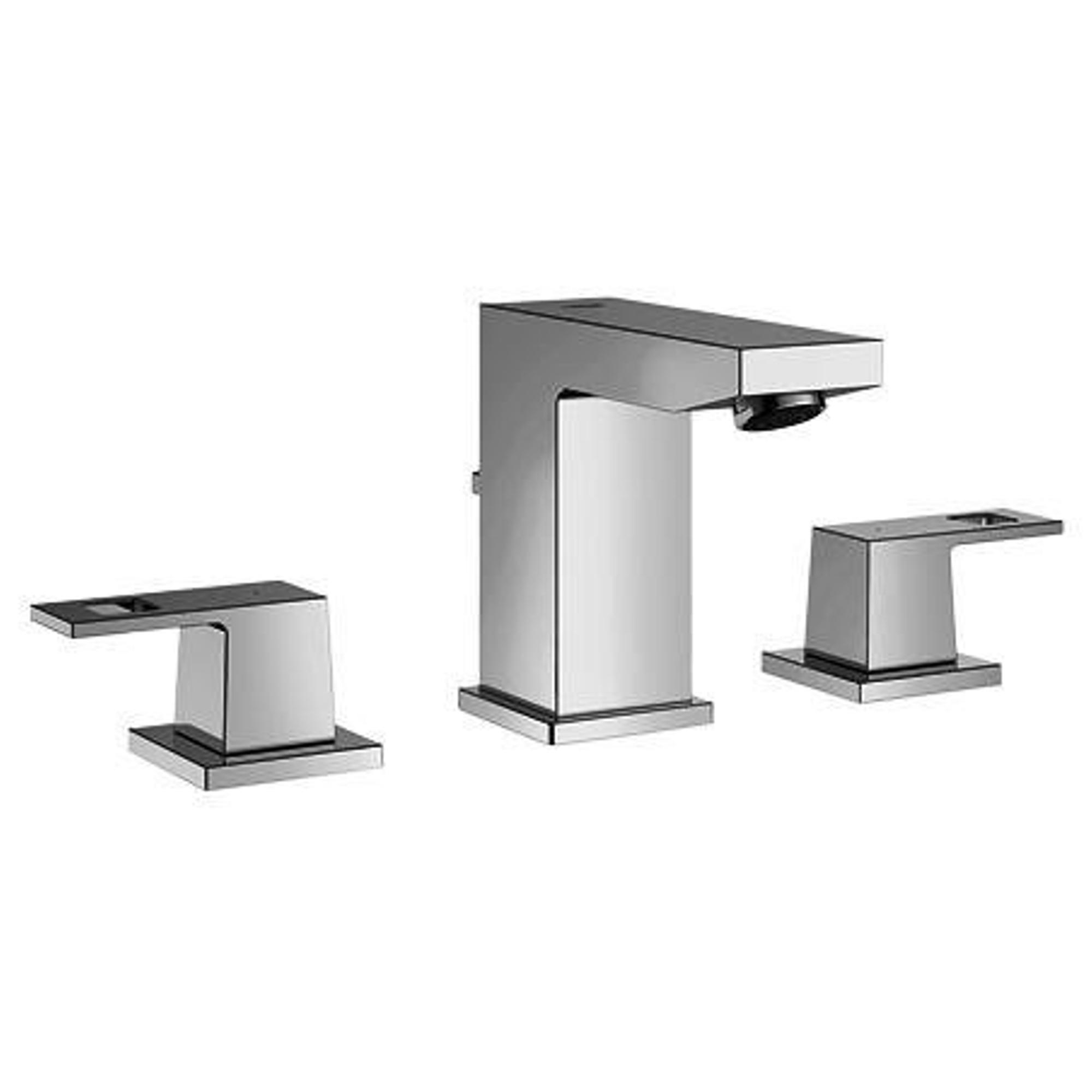 GROHE Eurocube – Accentueer je badkamer met deze driegats wastafelkraan Voor liefhebbers van een modern en strak design die hun keuken of badkamer een kenmerkende uitstraling willen geven, heeft GROHE de Eurocube serie ontworpen. Dankzij het bekroonde design en de kenmerkende Duitse techniek van GROHE beschikken de keukenkranen, badkamerkranen, douches en accessoires werkelijk over een vierkant design. Maak een echt stijlstatement met GROHE Eurocube.