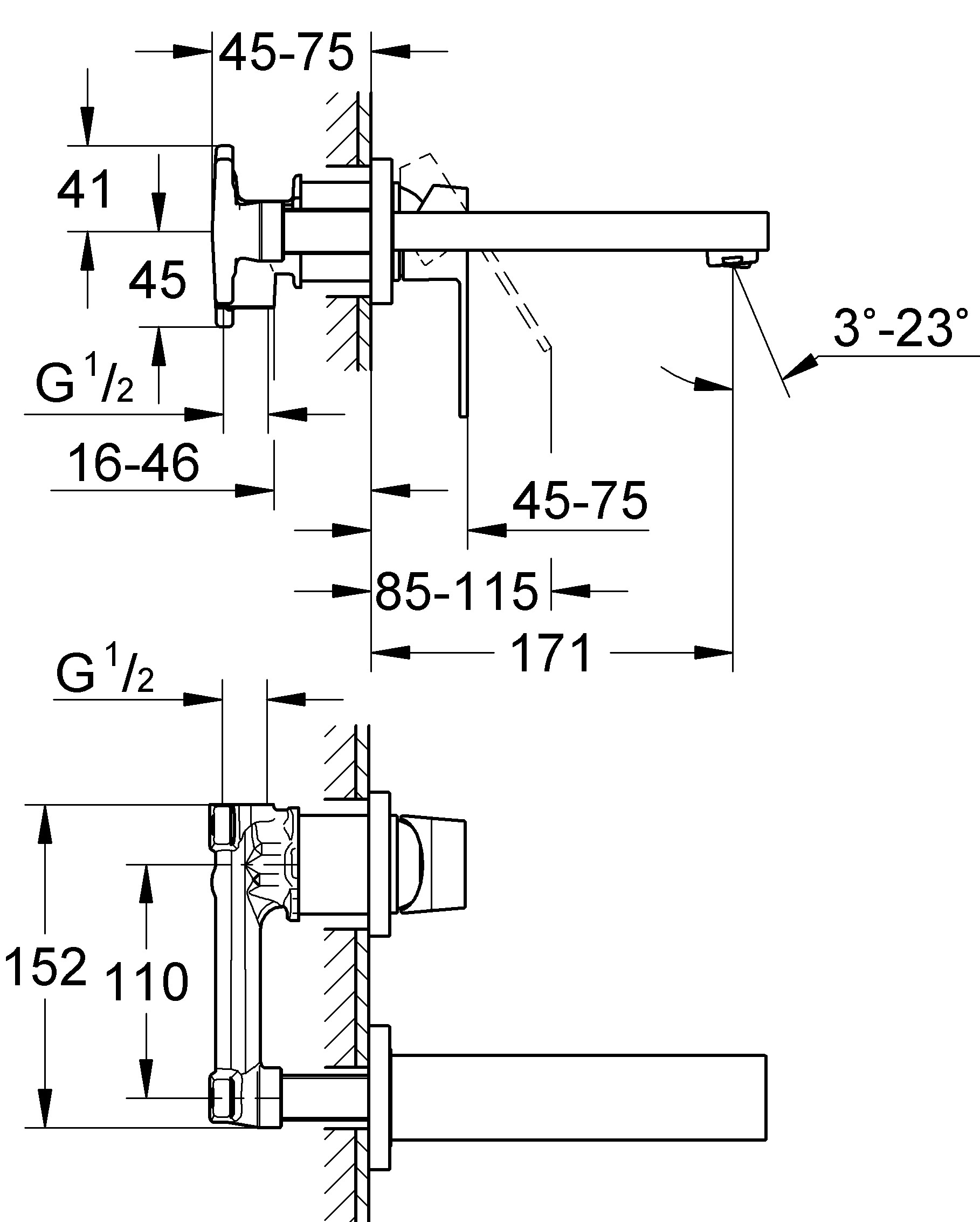 GROHE Eurocube afbouwdeel voor inbouw wandkraan met uitloop 172mm chroom