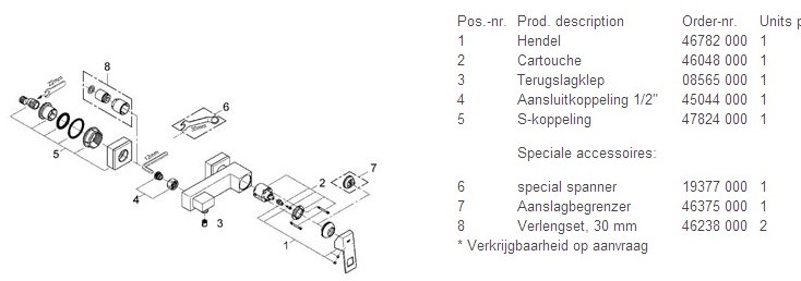 douche-aansluiting onder 1/2" met geïntegreerde terugslagklep