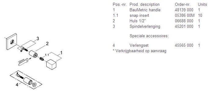 | Uitvoering inbouwstopkraan | afbouwdeel |