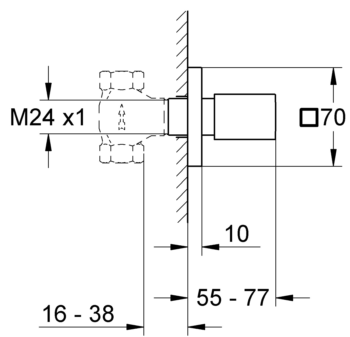 - Inbouwdiepte instelbaar 16 - 38 mm