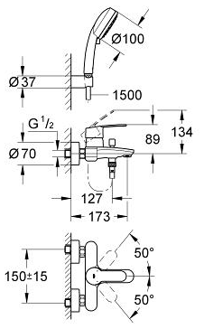 GROHE Eurostyle Cosmopolitan badkraan met omstel en koppelingen chroom