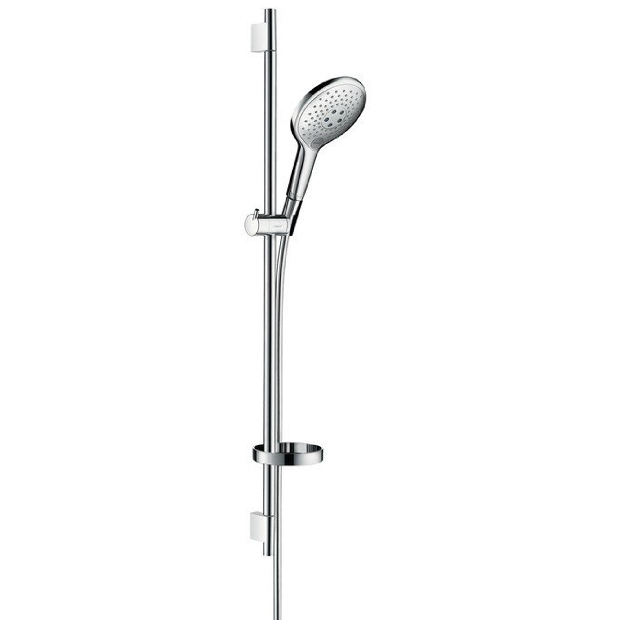 Met de Raindance Select S 150 doucheset zorgt hansgrohe voor veel doucheplezier. Veel doordachte details zoals de Unica glijstang (0,90 m), de anti-kink doucheslang en de praktische zeepschaal maken het douchen onmiddellijk comfortabeler. Daarbij verwent de 150 mm grote regendouche met drie op elkaar afgestemde straalsoorten. Ze kunnen snel en eenvoudig met één druk op de knop omgeschakeld worden (Select).