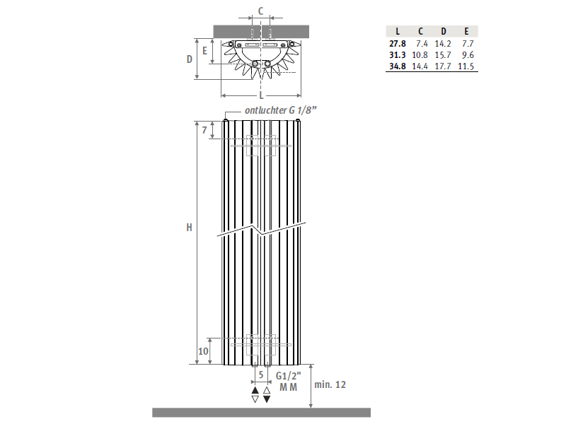 Jaga Iguana Circo Designradiator wandmodel 1800x270mm 801 watt metaal grijs