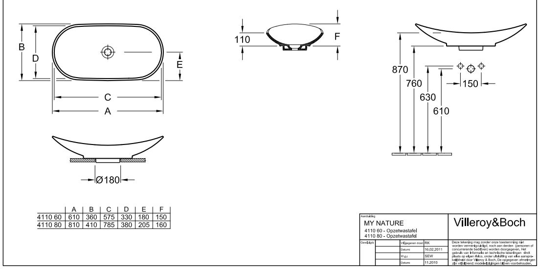 Villeroy & Boch My Nature opzetwastafel 81x41cm ceramic+ wit