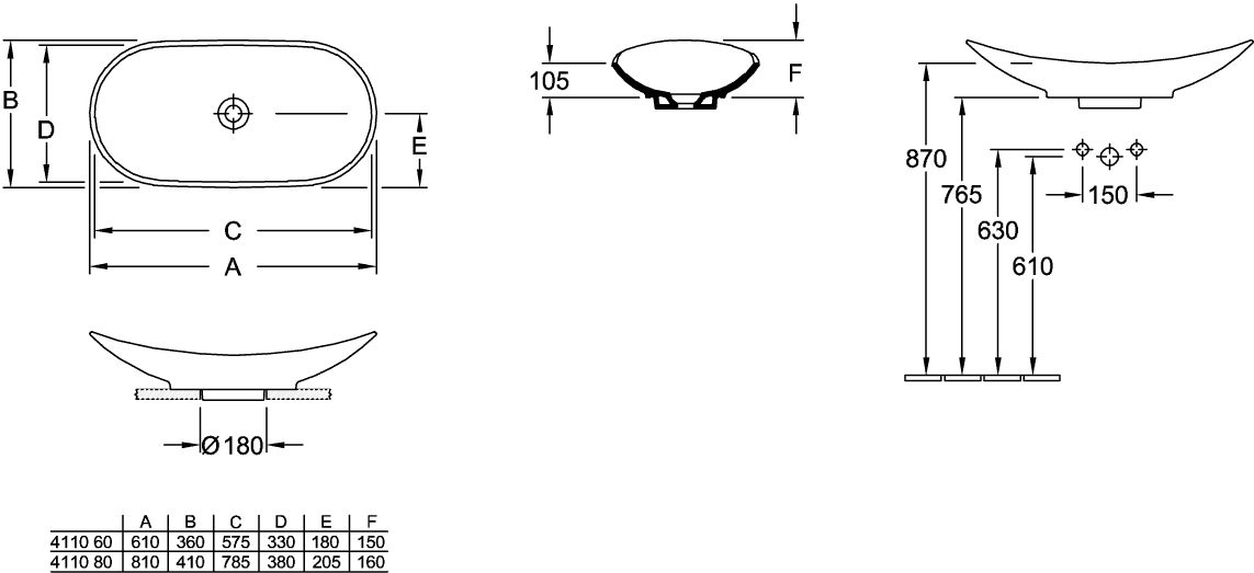 | Diepte (voorsprong) | 410 |