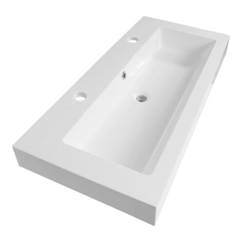 BRAUER Solar Thick wastafel 100x46x10cm - 1 wasbak - 2 kraangaten - mineraalmarmer - zijdeglans wit