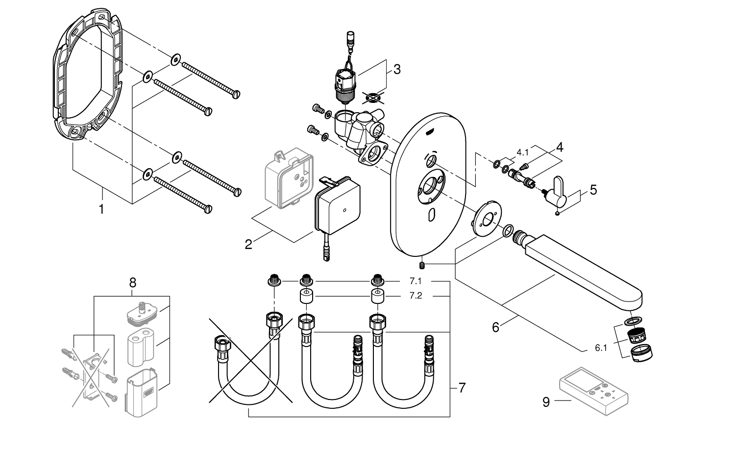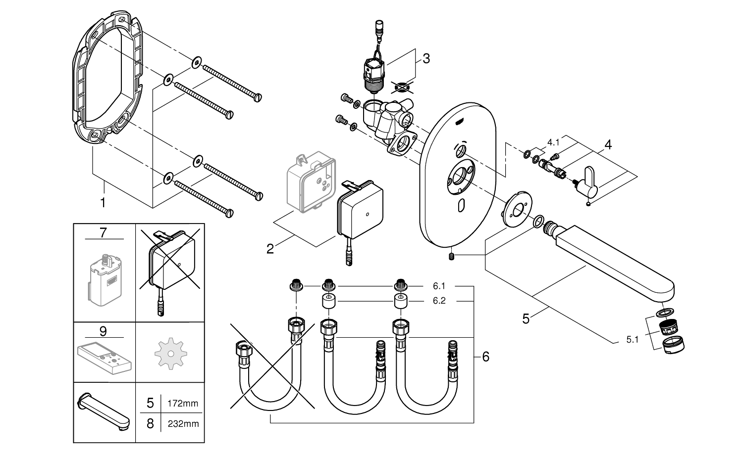 GROHE Eurosmart Cosmopolitan E afbouwdeel v wandkraan met uitloop 17cm met menging met tranformator 230V chroom