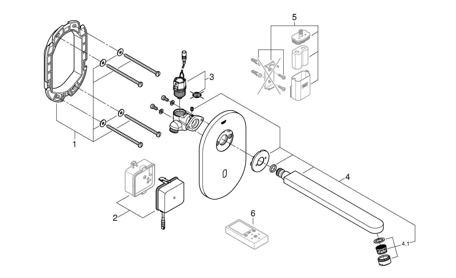 GROHE Eurosmart Cosmopolitan E - afbouwdeel wandkraan - uitloop 23cm - zonder menging - tranformator 230V - RVS