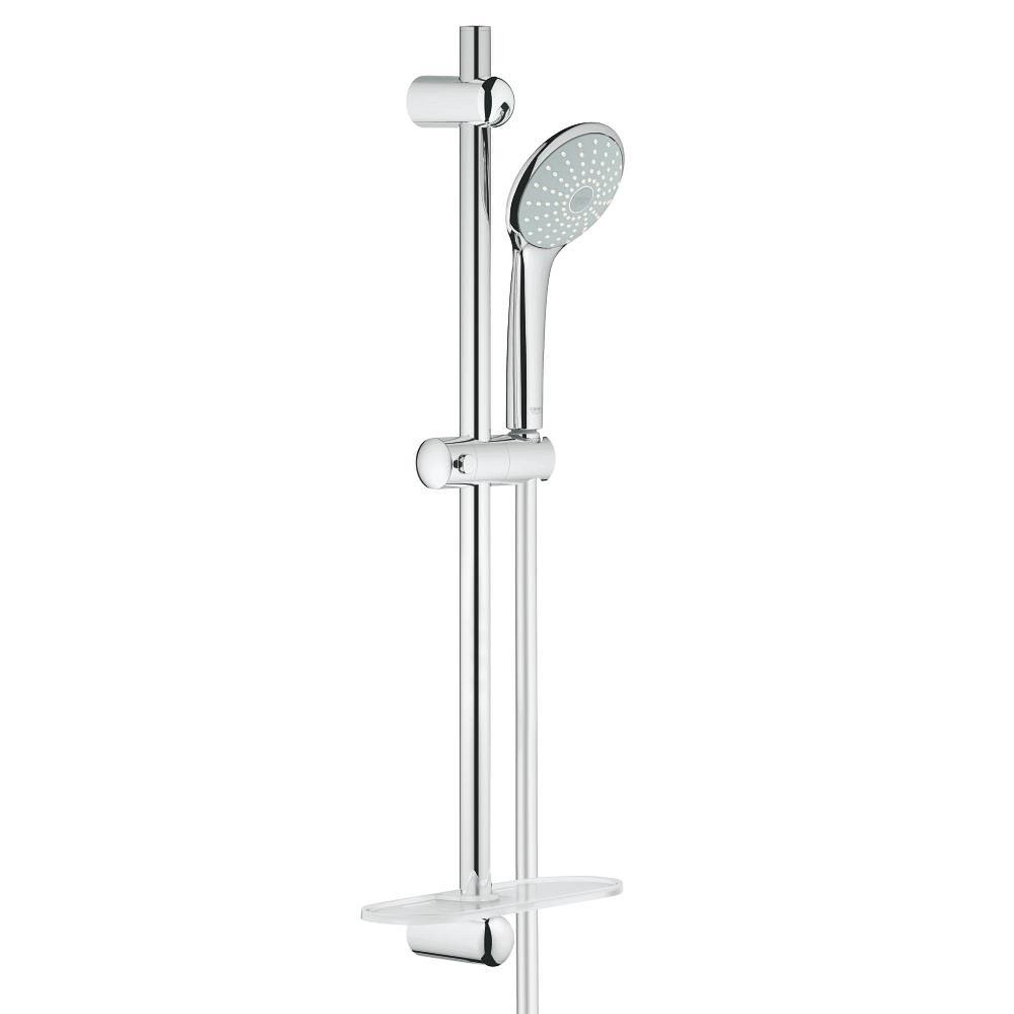 Euphoria 110 Mono doucheset - complete doucheset met ergonomisch design De Euphoria doucheserie combineert stijl, kwaliteit en efficiënt gebruik van water. De serie biedt een ruime keuze aan hand- en hoofddouches en een aantal verschillende straalpatronen. Zelfs voor beperkte budgetten zijn deze heerlijke douches betaalbaar. Het ergonomische design van de Euphoria handdouche is voorzien van een extra lange greep die naadloos overgaat in de douchekop met de elegante ring van chroom. GROHE DreamSpray® verdeelt het water gelijkmatig over ieder sproeigaatje voor een ongeëvenaarde douche-ervaring, terwijl de SmartRain straal, die wordt geproduceerd door de SprayDimmer op de handdouche, het waterverbruik met maximaal 40% vermindert. Je hebt keuze uit drie verschillende stijlen douchekoppen ter completering van je douche. De klassieke Euphoria hand- en hoofddouches worden aangevuld door Euphoria Cube, een kleine serie douchekoppen met een elegante vormgeving. De reeks heeft een minimalistisch design met vierkante vormen dat goed past bij onze Cosmopolitan kraanseries.