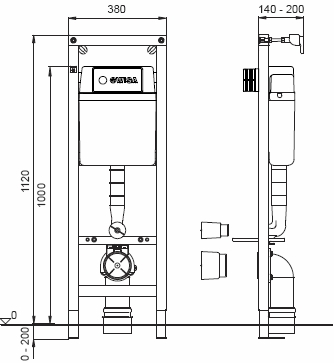 Wisa XT wc element frontbediening 112cm