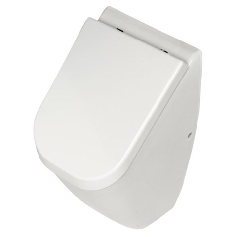 Het witte Plieger Pure wandurinoir wordt geleverd met deksel en heeft een achterinlaat.