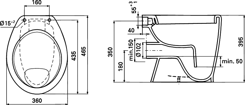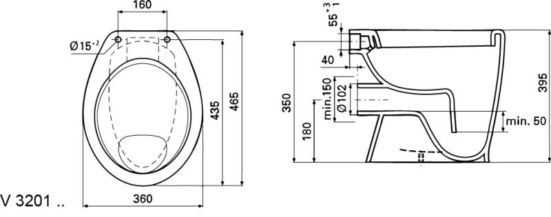 Ideal Standard closet staand met spoelrand vlakspoel PK wit