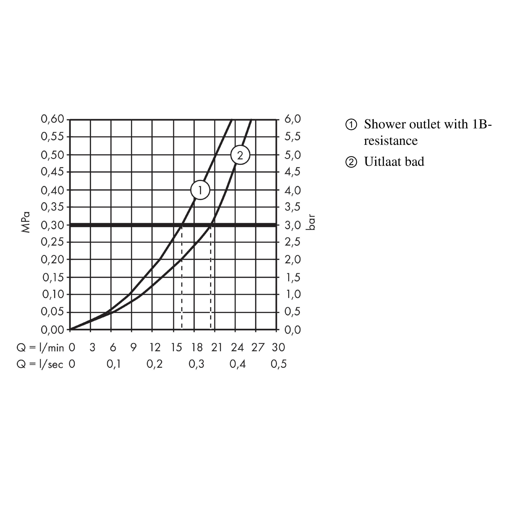 Met de regelaar voor de waterhoeveelheid wordt gewisseld tussen douchekop of baduitloop. Met een doorstroomhoeveelheid van maximaal 20 l/min (bij 3 bar) is het bad snel gevuld. Op de thermostaatgreep beschermt de SafetyStop-knop verder tegen het onbedoeld verstellen van de temperatuur. Pas na drukken wordt heet water boven 40°C naar wens vrijgegeven.
