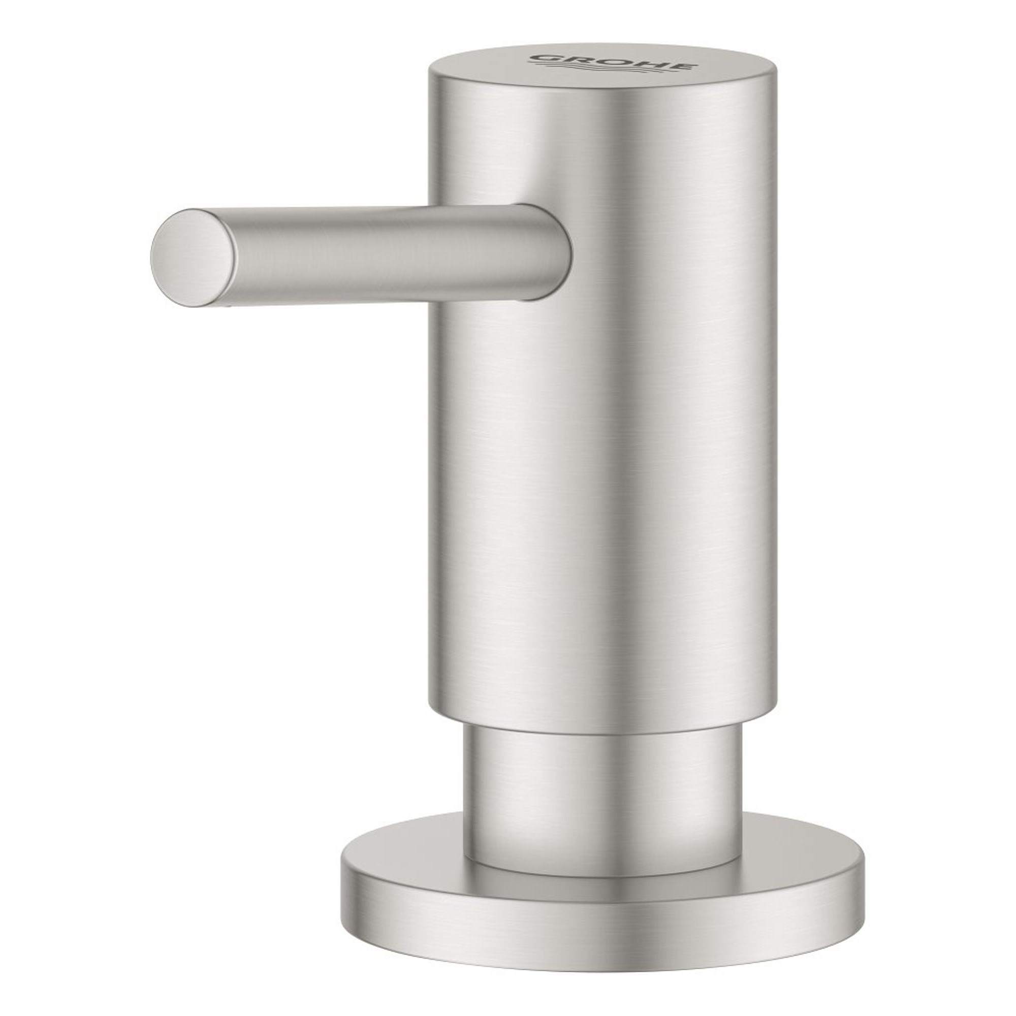 Cosmopolitan zeepdispenser - voor in de badkamer met robuuste RVS-look Een moderne en elegante GROHE zeepdispenser, de perfecte finishing touch in je keuken. Praktisch en duurzaam, kenmerkend GROHE vakmanschap. Deze zeepdispensers passen perfect bij al onze keukenkranen.
