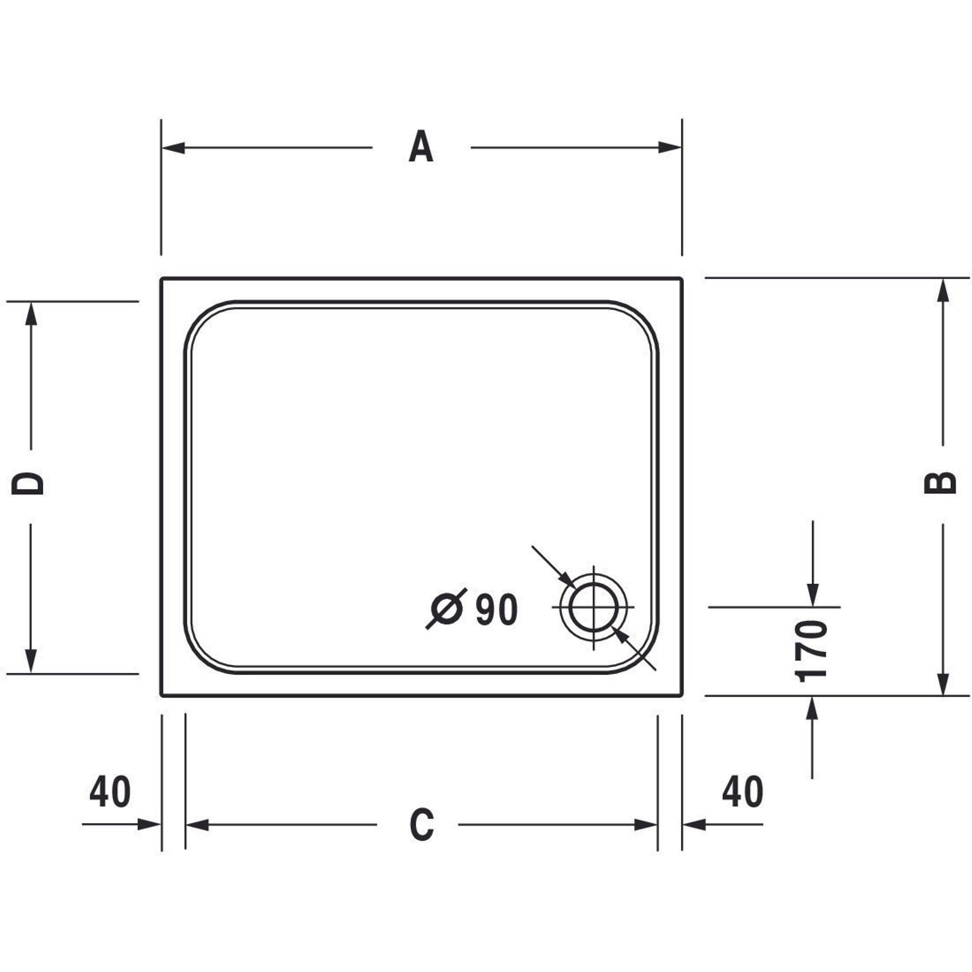 Duravit D-code douchebak 90x75x8,5cm rechthoekig acryl wit