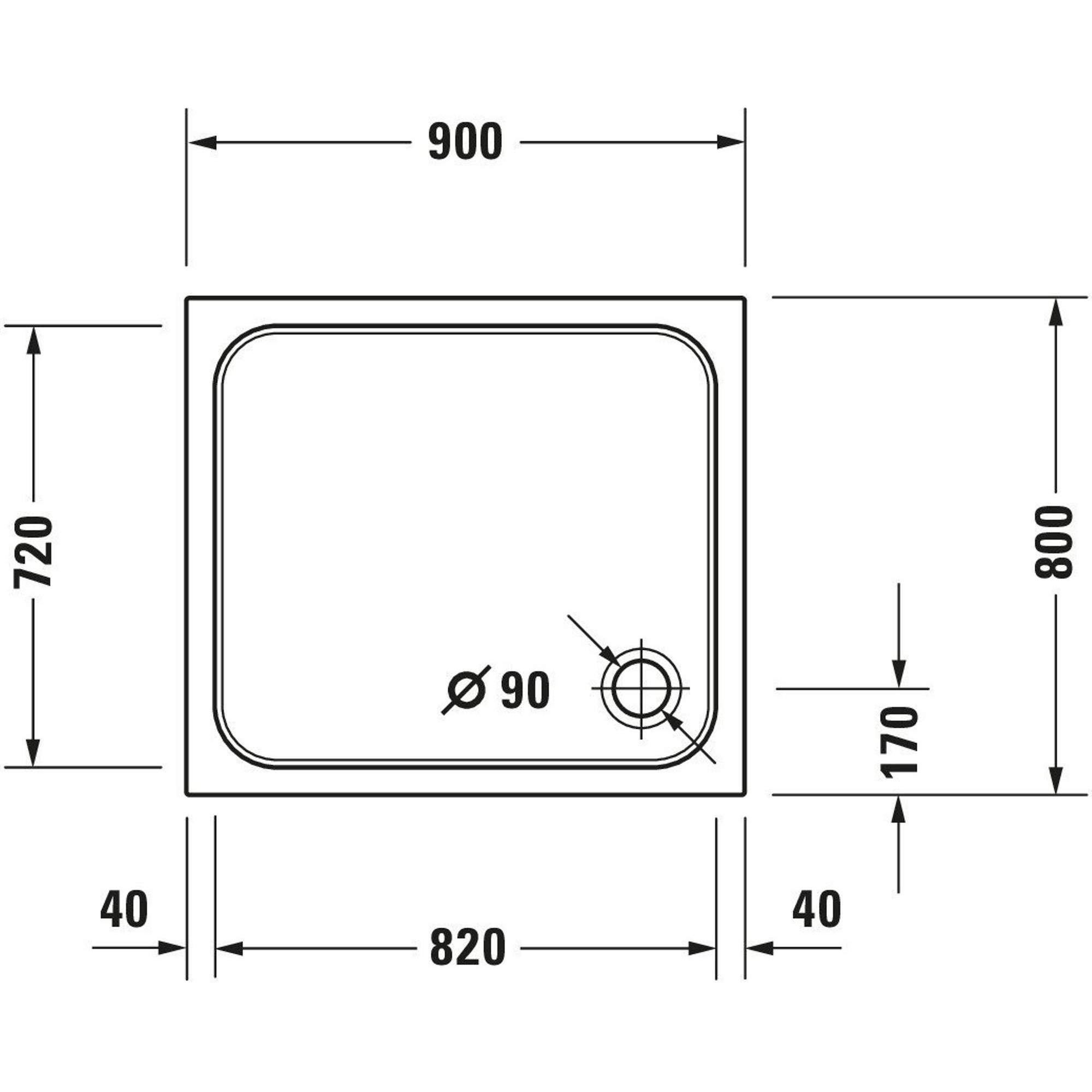 Duravit D-code douchebak 90x80x8.5cm acryl wit