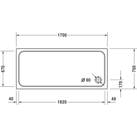 Duravit D Code douchebak 170x75x8.5cm acryl rechthoekig wit