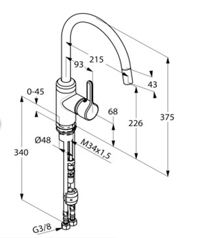 - uittrekbare uitloop, draaibare (230°)