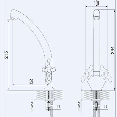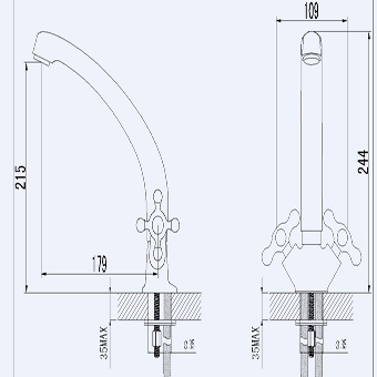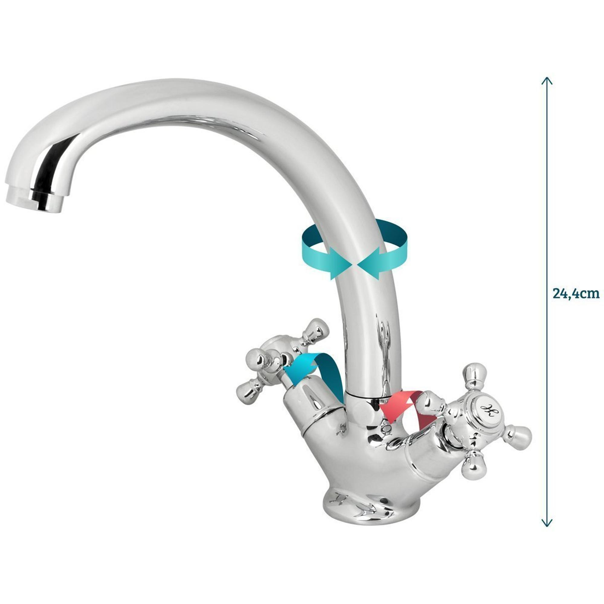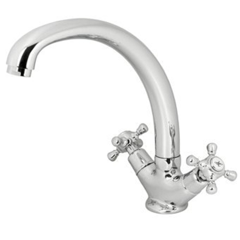 De nostalgische Plieger Charleston keukenkraan komt mooi tot zijn recht in een klassieke, landelijke of brocante keuken. Met zijn sierlijk gebogen, draaibare uitloop, mooie, klassieke kruisgrepen en decoratieve warm/koudaanduiding. Die je in gedachte even meevoeren naar vroeger tijden.