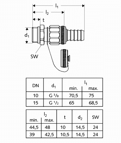 Schell vul en aftapkraan messing 1/2 kap en ketting