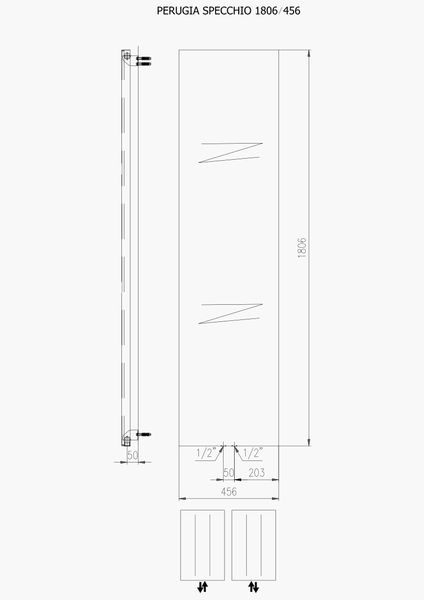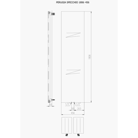 Plieger Perugia Specchio designradiator verticaal met spiegel middenaansluiting 1806x456mm 564W