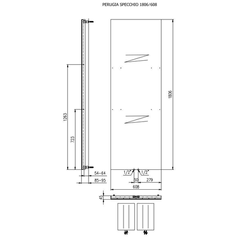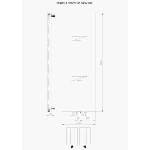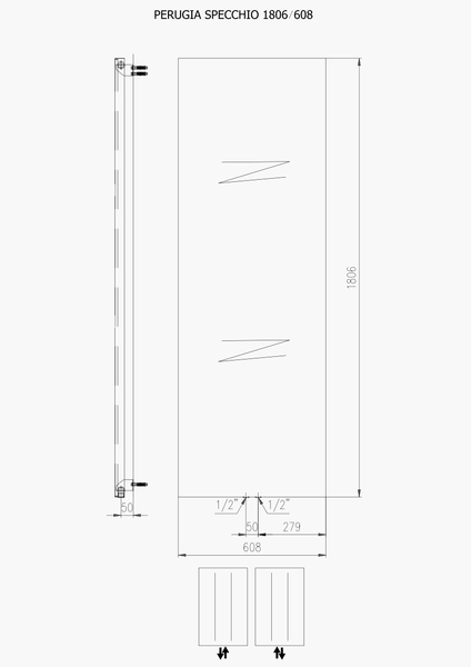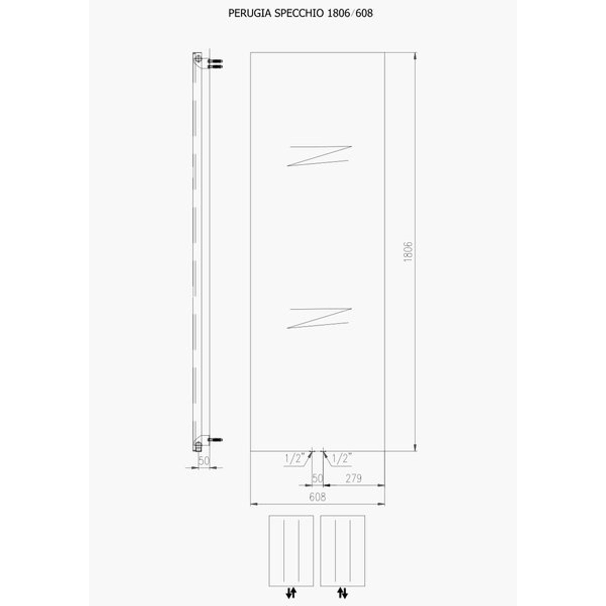 Plieger Perugia Specchio designradiator verticaal met spiegel middenaansluiting 1806x608mm 749W