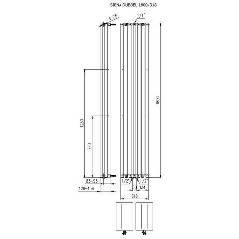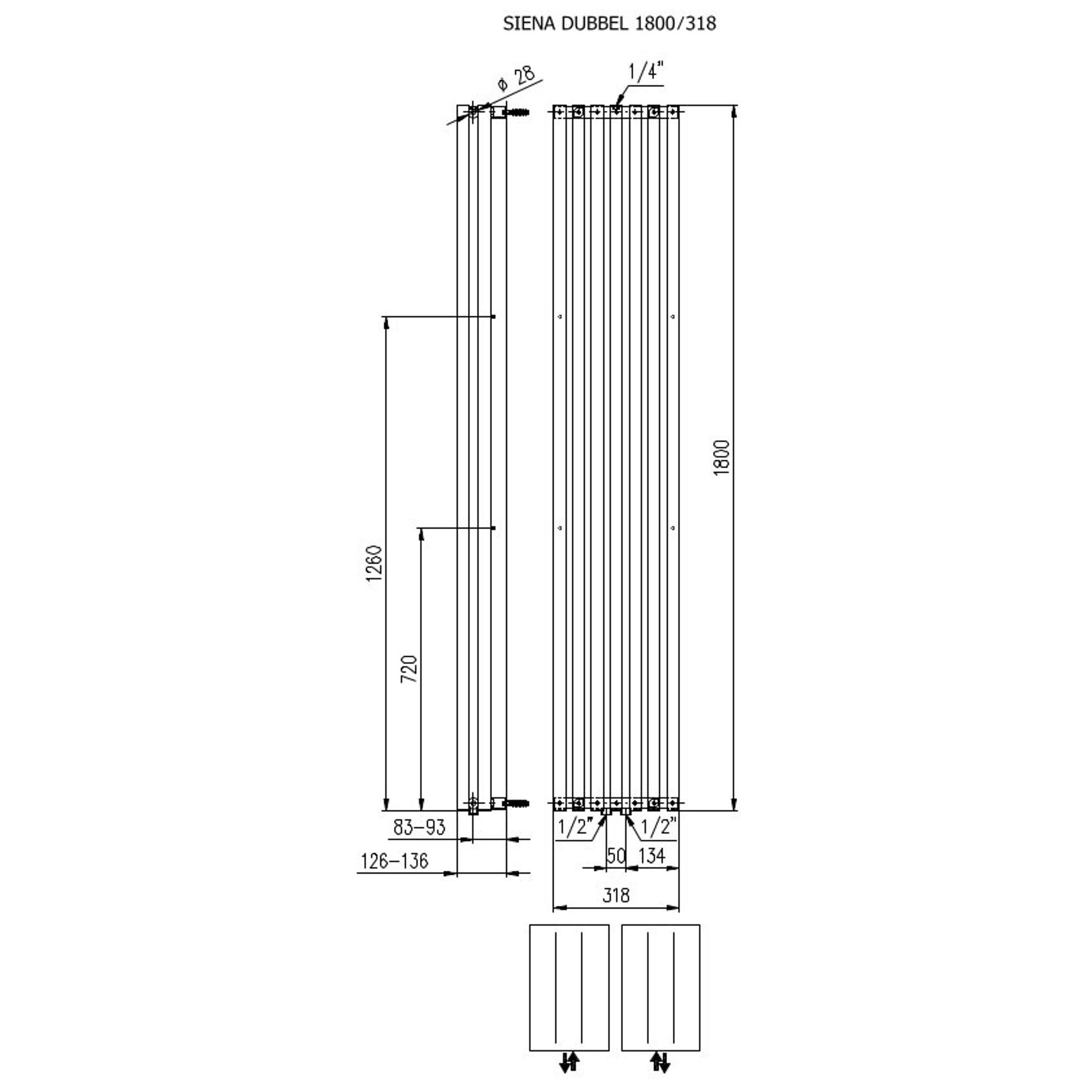 Plieger Siena designradiator verticaal dubbel 1800x318mm 1096W wit