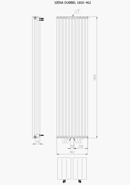 Plieger Siena designradiator verticaal dubbel 1800x462mm 1564W antraciet metallic