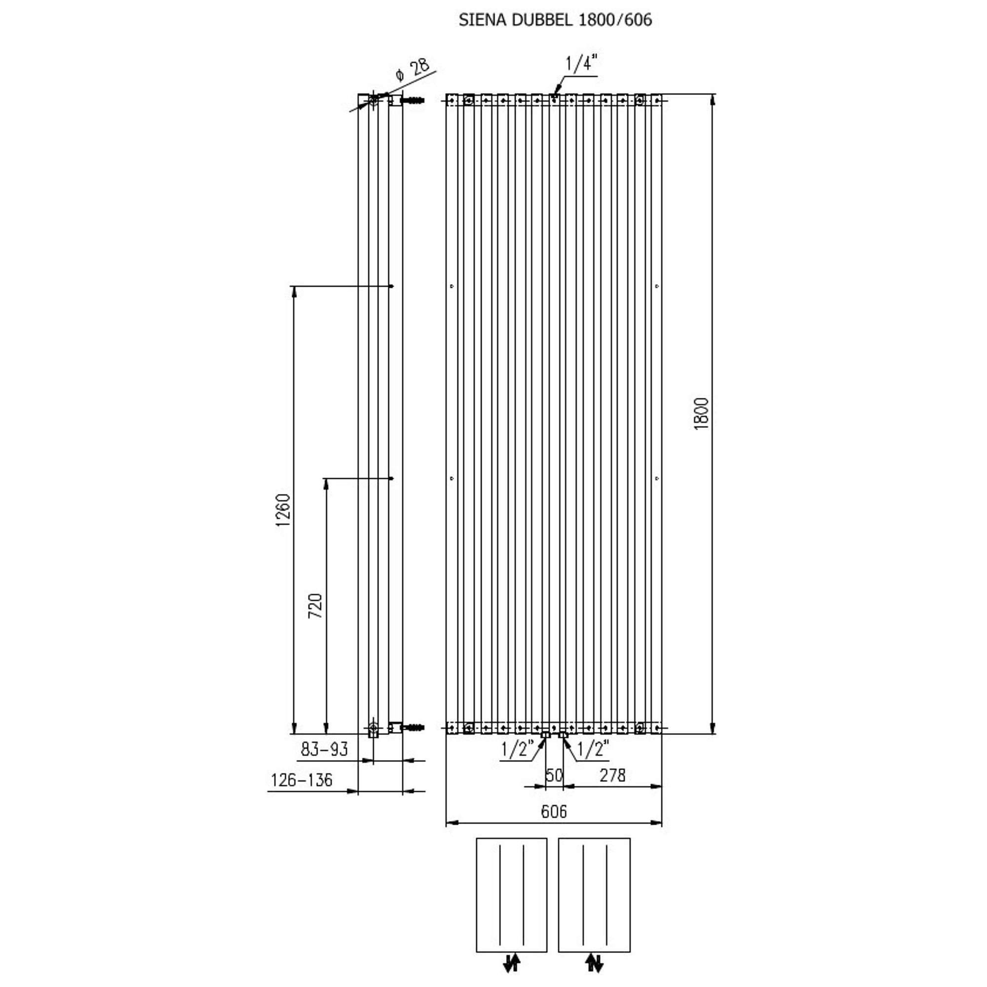 Plieger Siena designradiator verticaal dubbel 1800x606mm 2030W wit
