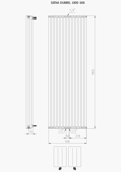 Plieger Siena designradiator verticaal dubbel 1800x606mm 2030W zwart grafiet (black graphite)