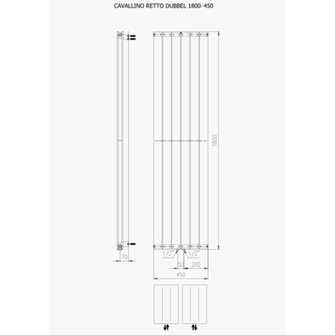 Plieger Cavallino Retto designradiator verticaal dubbel middenaansluiting 1800x450mm 1162W donkergrijs structuur