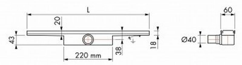 Easy Drain Compact 30 zero douchegoot enkele plaat met zijuitloop 6x60cm RVS